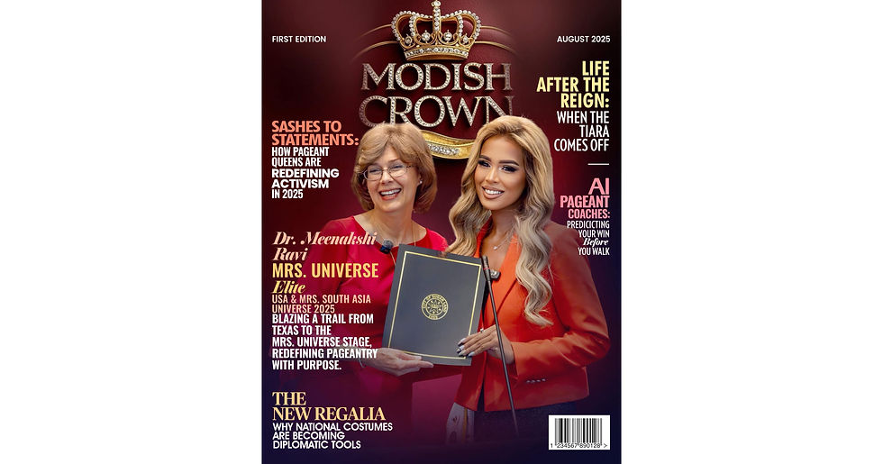 THE CITY HALL MARBLE FELT COOL beneath her heels, but the air hummed with Texas heat as Mayor Carol K. McCutcheon extended the parchment. "For exceptional dedication to women’s empowerment, cultural representation, and humanitarian leadership," the Mayor declared, her voice echoing in the vaulted chamber. Dr. Meenakshi Ravi—physician-turned-pageant-icon, Mrs. Universe Elite USA, and Sugar Land’s newly anointed daughter—accepted the scroll with a diplomat’s grace. In that gesture, two worlds fused: civic power and couture royalty.
