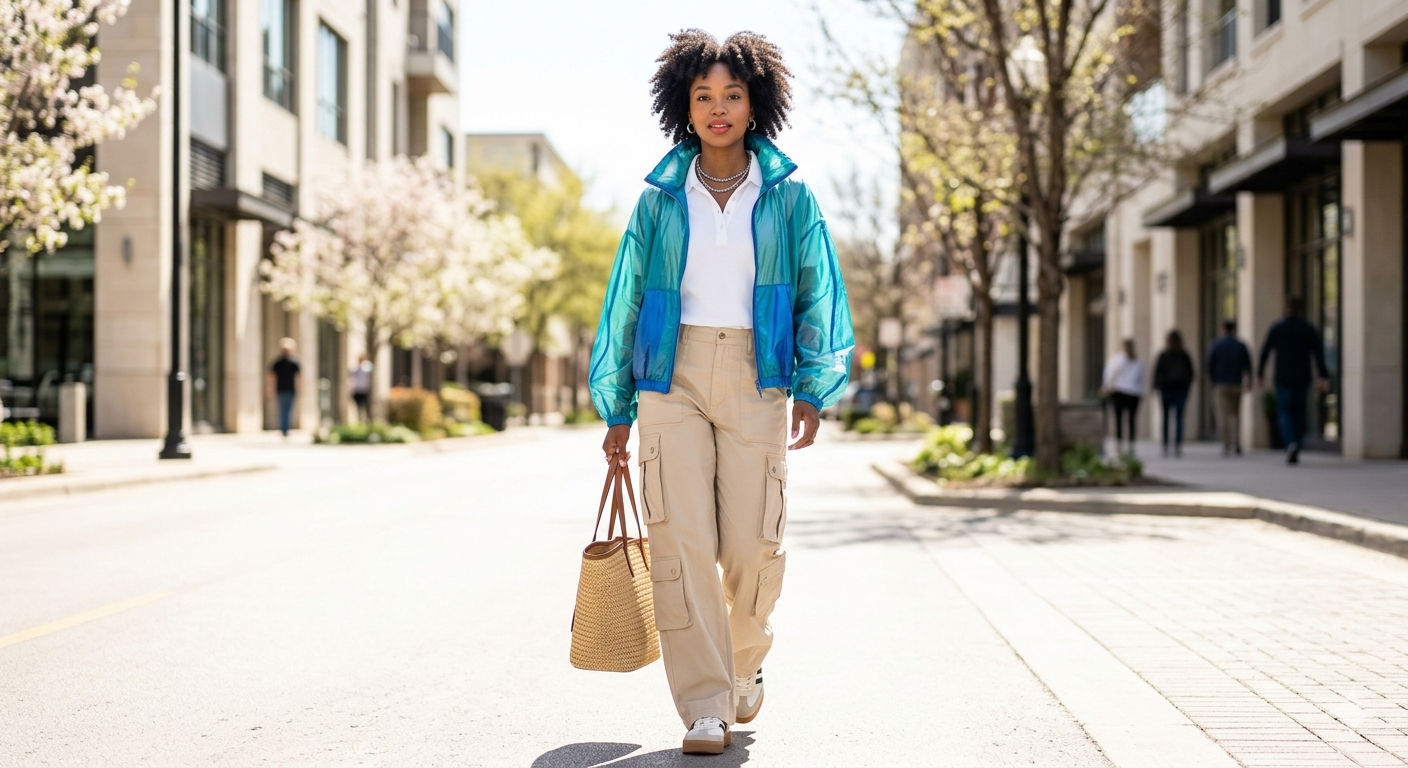 • Mode Sportif & Utility Dressing: Oversized windbreakers, cargo pants, and polo tops are everywhere. Designers like Loewe and Fendi revived ‘90s-inspired windbreakers in lightweight nylons, perfect for layering over a simple tee. Pair them with pedal pushers (yes, capris are back in legging form) for a seamless gym-to-brunch transition. Utility isn’t boring—it’s functional chic with pockets that actually work.